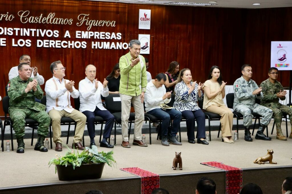 En la entrega del distintivo Empresa Respetuosa de los Derechos Humanos, el gobernador Rutilio Escandón Cadenas felicitó y reconoció a las y los empresarios chiapanecos por sumarse a esta iniciativa a favor del respeto y la promoción de los derechos humanos, la igualdad y la no discriminación en los espacios laborales, lo que ha sido fundamental para que en Chiapas exista mayor bienestar, progreso y crecimiento económico.