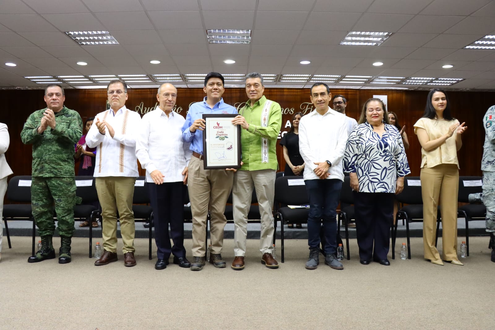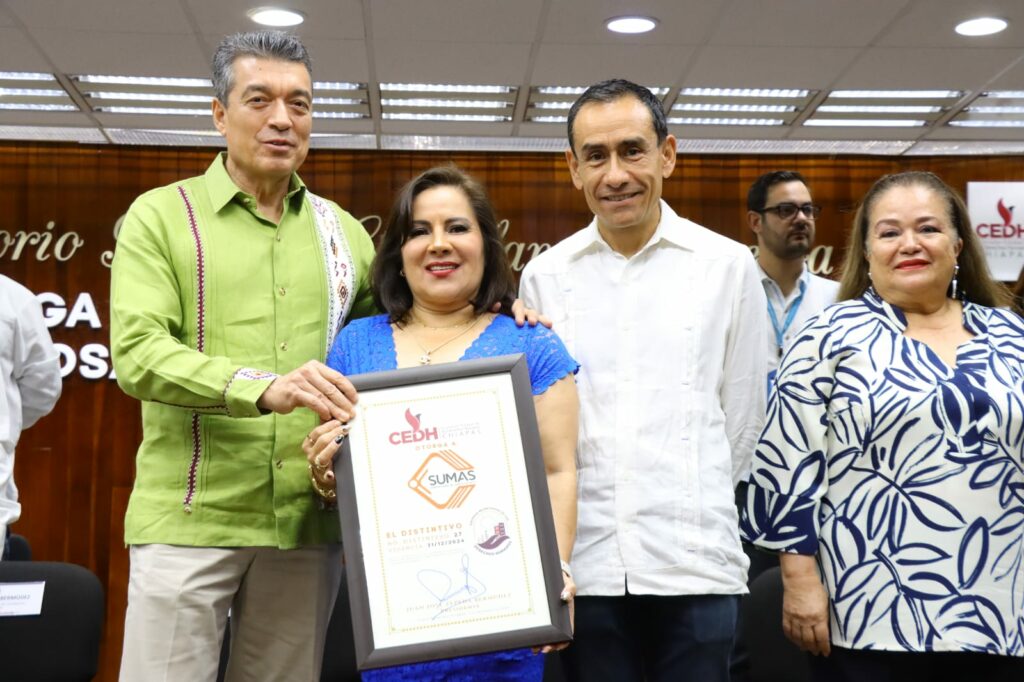 “En esta ocasión celebramos a empresas que, además de abonar al desarrollo de Chiapas, también contribuyen de manera destacada a las políticas de respeto a los derechos humanos. La CEDH reafirma su compromiso de acompañar a las dependencias públicas y organismos privados en la promoción de relaciones armoniosas y hacer realidad los objetivos de desarrollo sostenible”, manifestó.