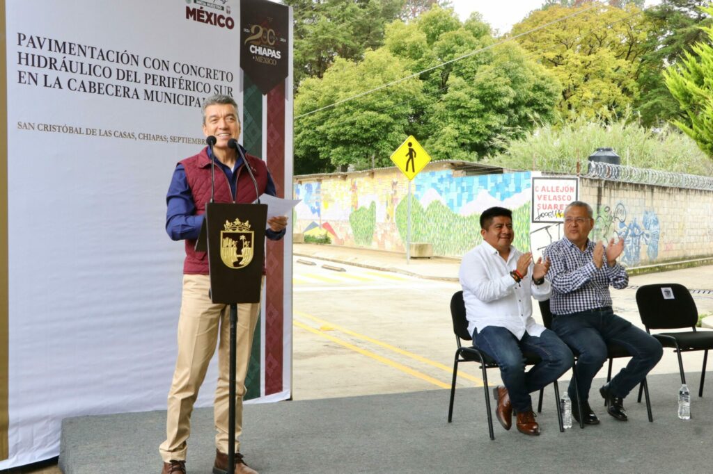 El gobernador Rutilio Escandón Cadenas inauguró la primera etapa de la pavimentación con concreto hidráulico del Periférico Sur en la cabecera municipal de San Cristóbal de Las Casas, en respuesta a una necesidad prioritaria de la población de contar con vialidades en condiciones dignas para mejorar la accesibilidad y movilidad urbana.