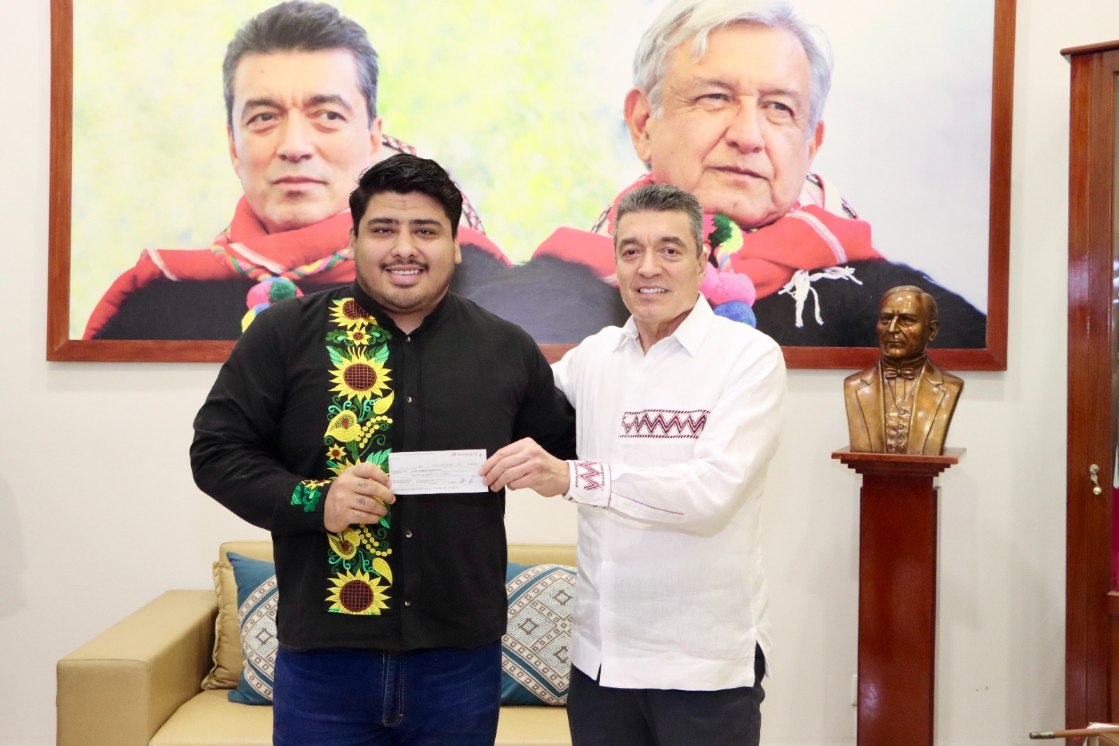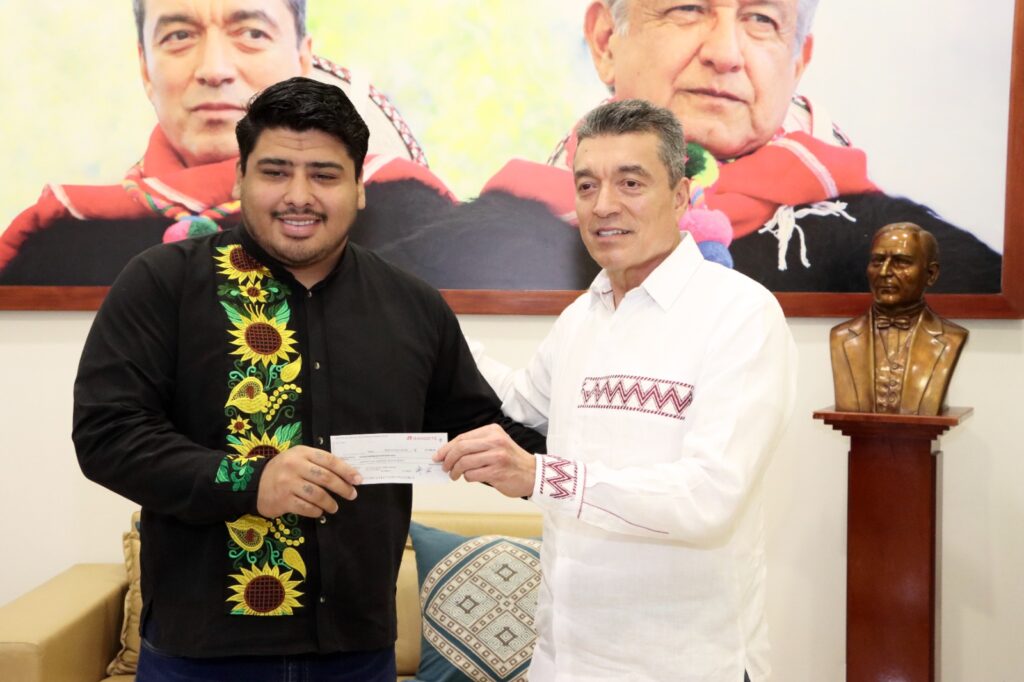 El gobernador Rutilio Escandón Cadenas realizó la entrega de recursos económicos al ganador del Premio Estatal del Deporte 2023, Eduardo Maximiliano García Betanzos, a quien felicitó y reconoció la disciplina, el esfuerzo y desempeño que ha mantenido en las diferentes competencias de luchas asociadas en las que ha participado, poniendo a Chiapas en alto a nivel nacional e internacional.
