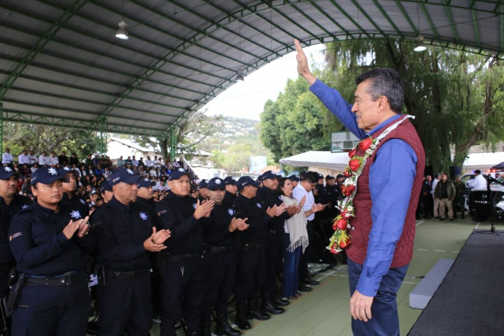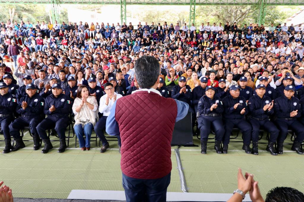 El secretario ejecutivo del Sistema Estatal de Seguridad Pública, Sergio Alejandro Aguilar Rivera, dijo que a las y los policías se les brinda las herramientas necesarias para que realicen sus funciones y continúen cuidando al pueblo. Informó que se les sigue entregando becas de capacitación, que se ha invertido más 777 millones de pesos a nivel regional y que se ha logrado un incremento salarial para el 63 por ciento de las y los policías a nivel estatal.