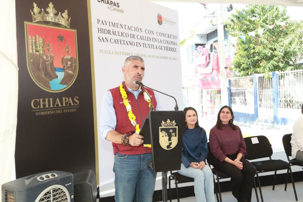 Al inaugurar la pavimentación con concreto hidráulico y el mejoramiento integral del andador 10, entre calles 1 y 2, de la colonia San Cayetano, en Tuxtla Gutiérrez, el gobernador Rutilio Escandón Cadenas destacó que su gobierno ha asumido el compromiso de invertir en obras prioritarias, con el objetivo de modernizar la imagen urbana, fortalecer la movilidad y conectividad, y abonar a la seguridad y el bienestar de la población.