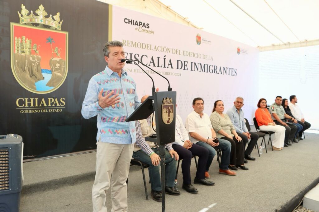 Durante la inauguración de la rehabilitación del edificio que ocupará la Fiscalía de Inmigrantes, en el municipio de Tapachula, el gobernador Rutilio Escandón Cadenas destacó la importancia de contar con un espacio adecuado para defender los derechos humanos y otorgar apoyo integral a las y los migrantes, quienes por necesidad cruzan la frontera en busca de una mejor calidad de vida.