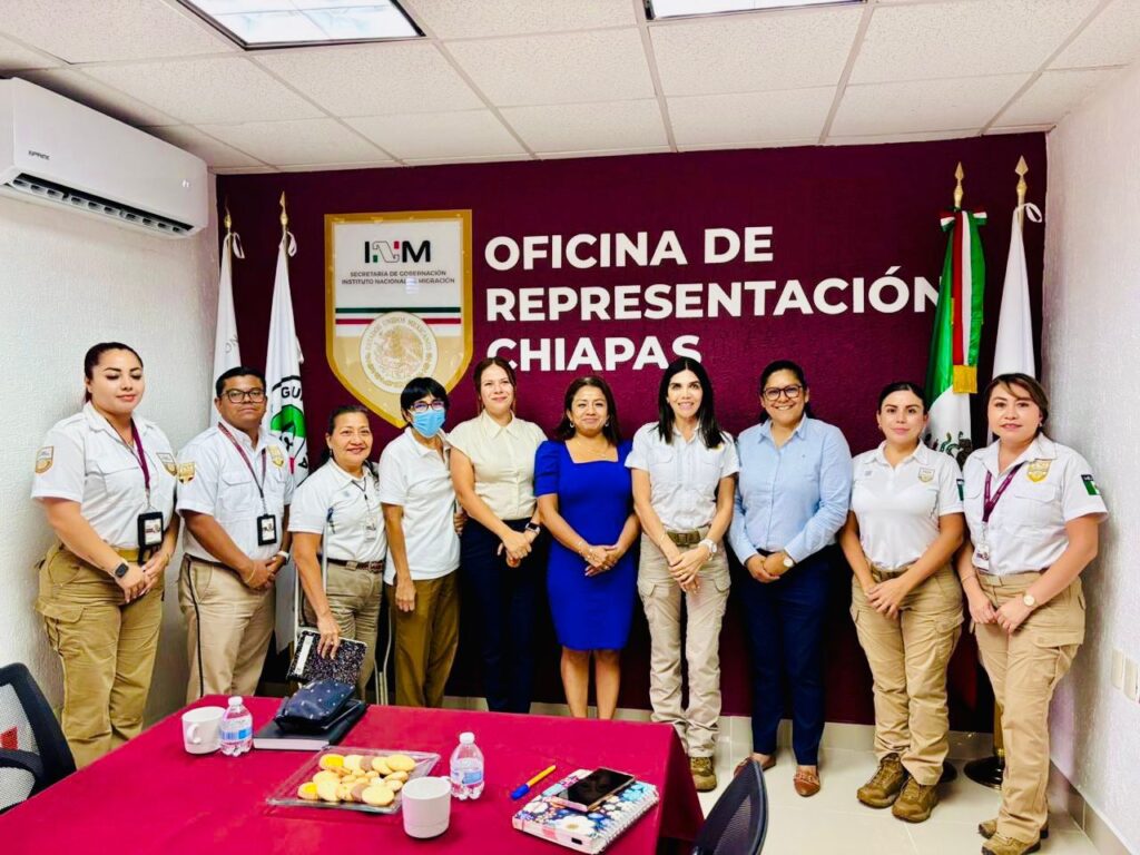 Tapachula, Chiapas.– Con el firme compromiso de fortalecer la coordinación entre los tres niveles de gobierno para combatir la trata de personas, la titular de la Oficina de Representación del Instituto Nacional de Migración (INM) en Chiapas, Farah Gertrudis Cerdio Moisés, encabezó una reunión interinstitucional con representantes de diversas dependencias, entre ellas el DIF Regional, DIF Municipal, Secretaría de Salud y la Fiscalía Contra la Trata de Personas.