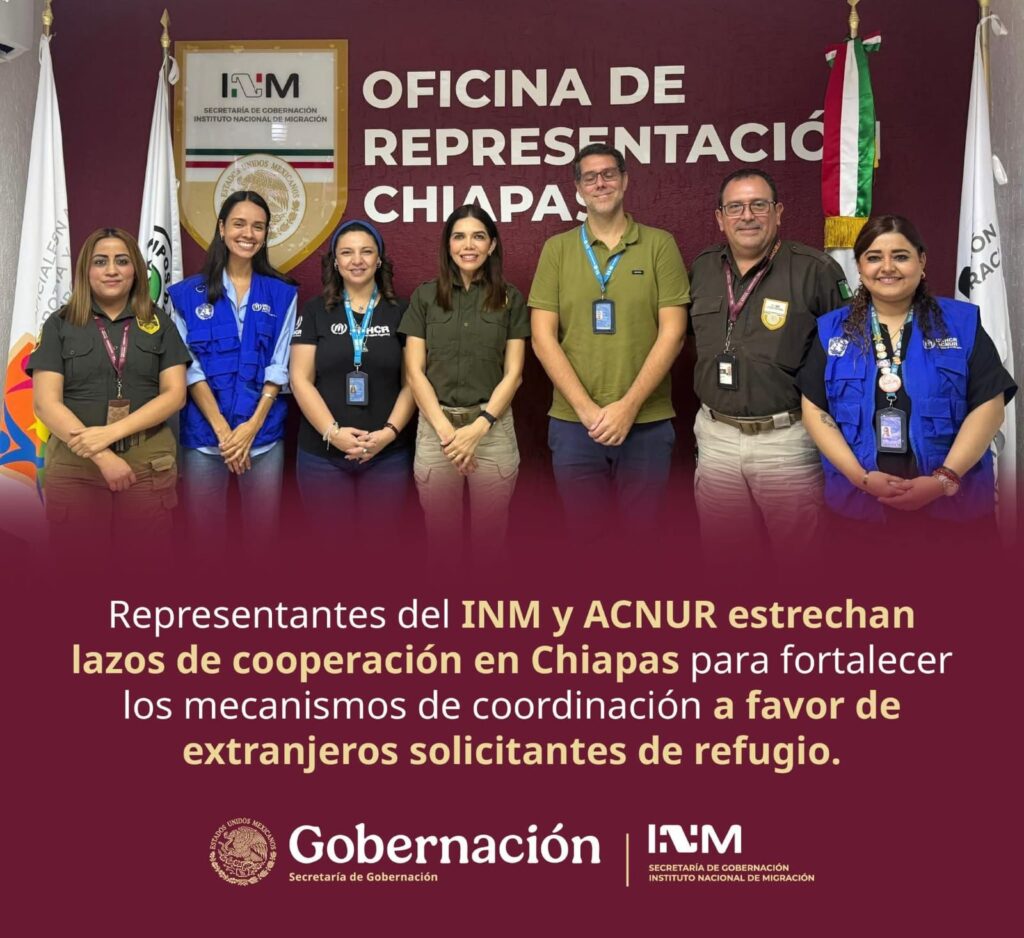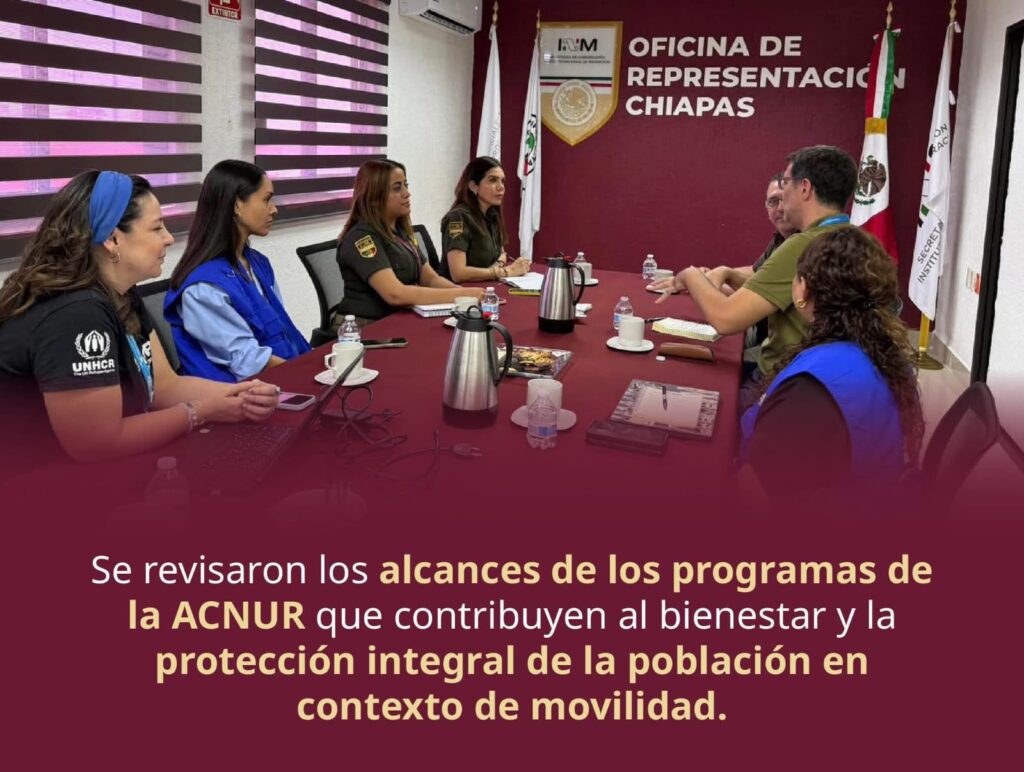 Chiapas.— Con el objetivo de reforzar los mecanismos de coordinación interinstitucional en favor de las personas extranjeras solicitantes de la condición de refugio, se llevó a cabo una reunión de trabajo entre el Instituto Nacional de Migración (INM) y el Alto Comisionado de las Naciones Unidas para los Refugiados (ACNUR), en el estado de Chiapas.