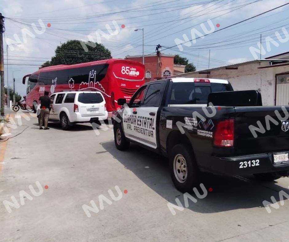 En ese momento, la conductora de una camioneta Nissan Pathfinder color blanco presuntamente intentó rebasar sin tomar en cuenta la maniobra del vehículo de transporte, lo que derivó en un impacto contra el costado izquierdo del autobús.