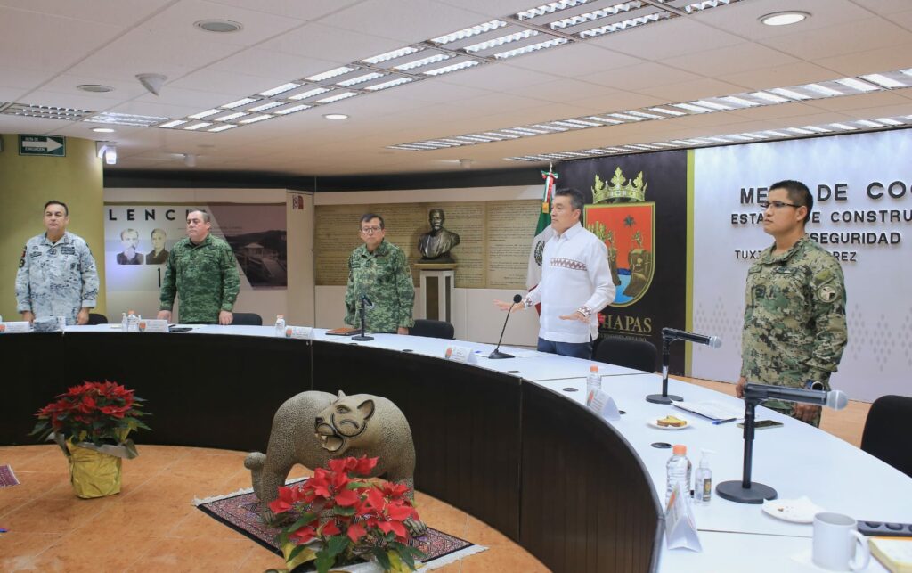 Durante la Mesa de Coordinación Estatal para la Construcción de la Paz y la Seguridad, el gobernador Rutilio Escandón Cadenas informó que, de acuerdo con el pronóstico meteorológico en Chiapas, la interacción de los frentes fríos 19 y 20 provocará continuidad de las lluvias, las bajas temperaturas y los fuertes vientos, por lo que reiteró el llamado a la población a mantener las medidas preventivas.