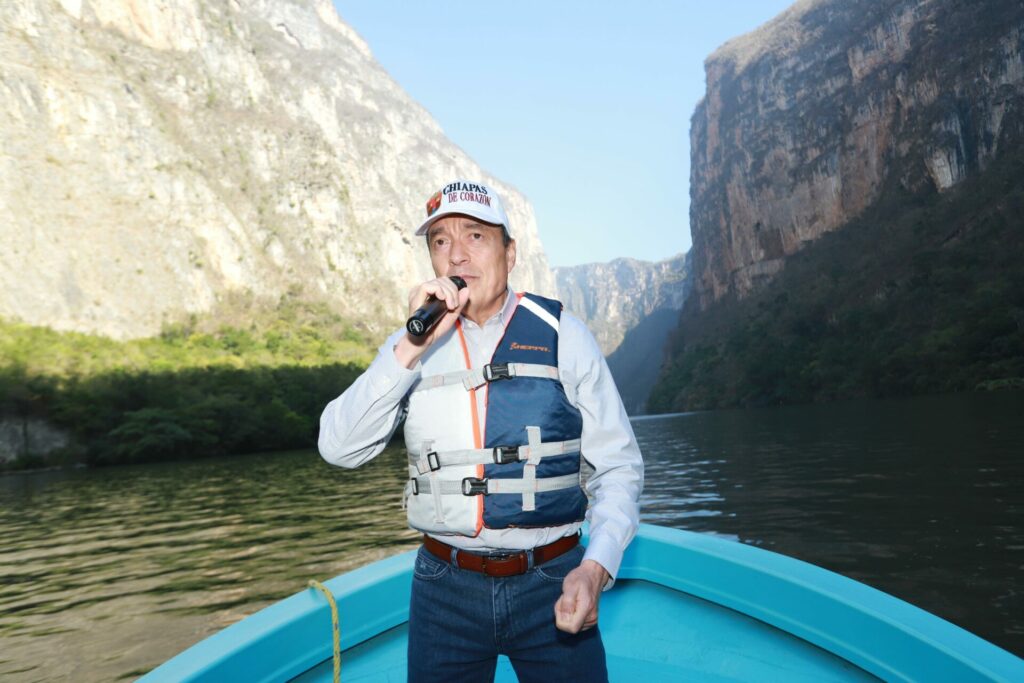 Subrayó que, al iniciar este gobierno, el Cañón del Sumidero se encontraba muy contaminado de basura y desechos orgánicos, lo que afectaba la vida silvestre y provocaba que la navegación fuera peligrosa, sin embargo, gracias a la suma de esfuerzos entre pueblo y gobierno, ha recuperado su esplendor con un ecosistema de flora y fauna regenerado, además de ser muy seguro para que el turismo nacional e internacional pueda recorrerlo y gozarlo.