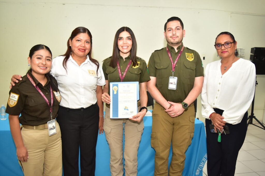 Tapachula, Chiapas.– La Titular del Instituto Nacional de Migración en Chiapas, Farah Gertrudis Cerdio Moisés, participó en la entrega de reconocimientos a diversas instituciones del sector público y productivo, en el marco del 40° Aniversario de la Facultad de Ciencias de la Administración, Campus IV.