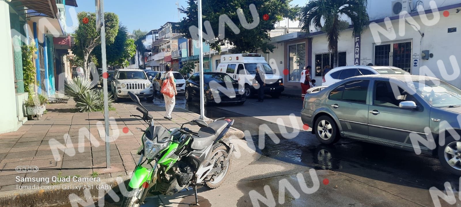 Entre la sexta calle Poniente y privada, la conductora de una motocicleta itálika se pegó o intentó rebasar otro vehículo, pero se pegó del costado izquierdo chocando contra el retrovisor.