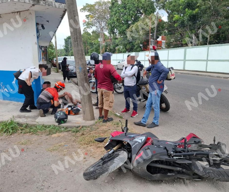 Tapachula, Chiapas; 23 de febrero de 2026. — Dos jóvenes motociclistas resultaron lesionados la tarde de este lunes luego de verse involucrados en un accidente automovilístico en la intersección de la 13 Sur y 8 Oriente, en la ciudad de Tapachula.