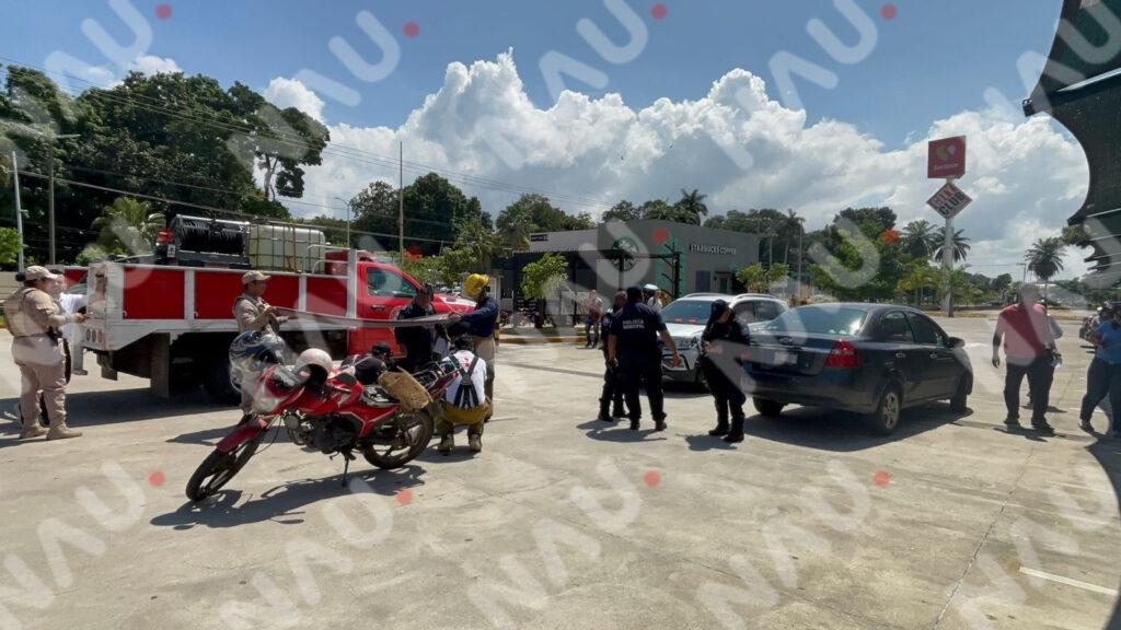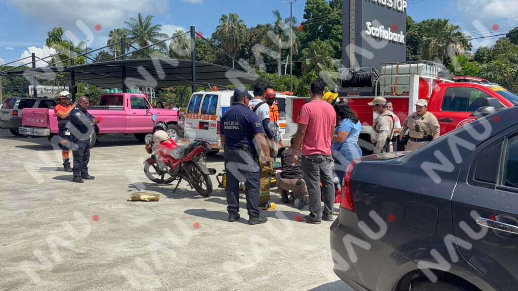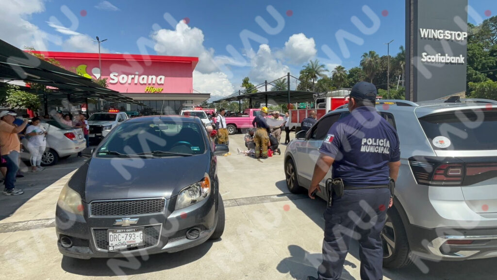 Elementos del Cuerpo de Bomberos de Tapachula, quienes se encontraban en la zona atendiendo una revisión por un conato de incendio reportado en la cercana Plaza Alaiia, fueron los primeros en auxiliar a la lesionada. Posteriormente, paramédicos de Servicios Auxiliares de Emergencia arribaron al lugar y trasladaron a la mujer a una clínica particular para recibir atención médica.