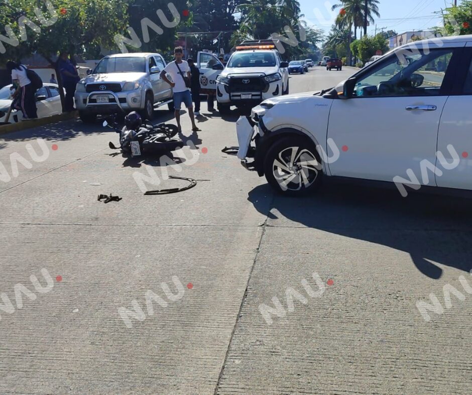 Taxi y motocicleta chocan en la colonia 5 de Febrero; menor de 17 años resulta lesionado