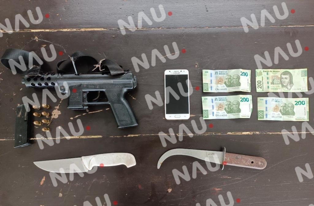 A los detenidos se les aseguró un arma de fuego miniuzi de color negro, marca itec, calibre 9 mm, con un cargador y siete cartuchos útiles, dos cuchillos de metal con el cual utilizaron para amagar a la parte agraviada.