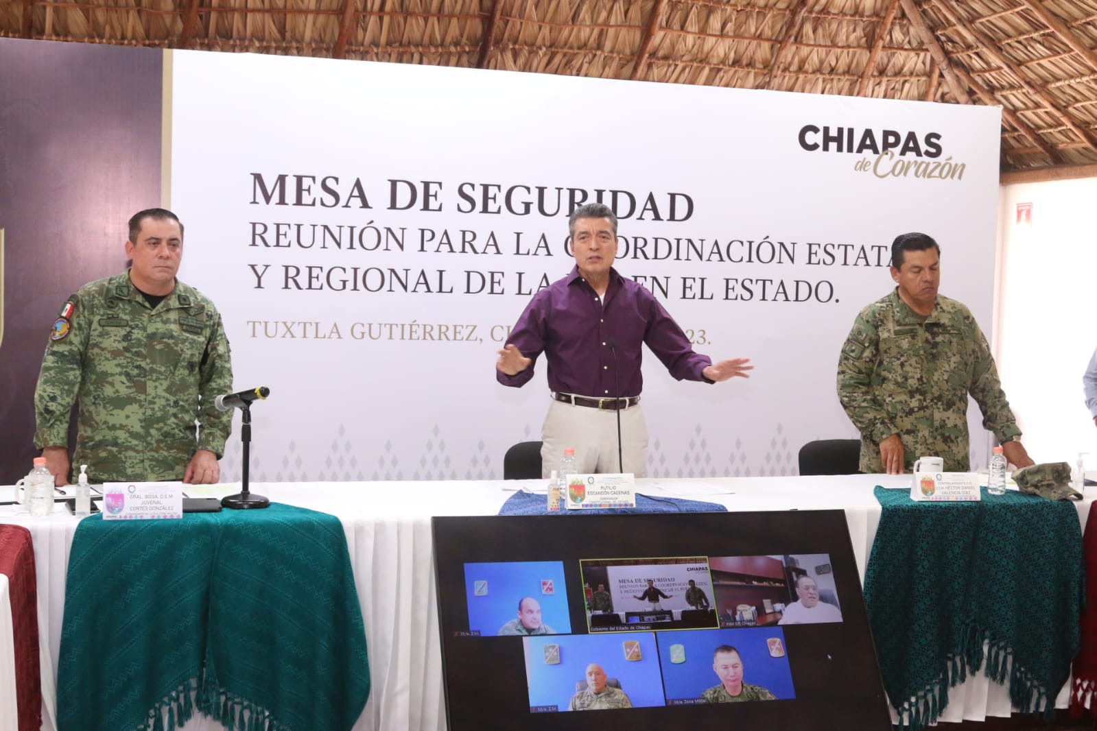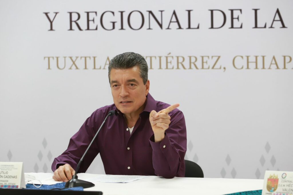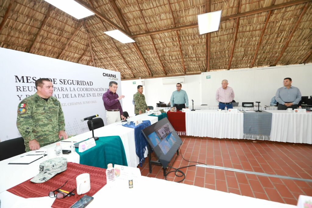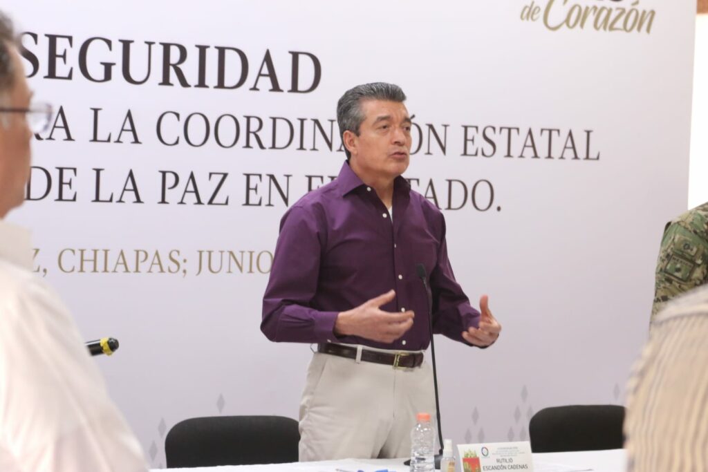Durante la Mesa de Coordinación Estatal para la Construcción de la Paz y la Seguridad, el gobernador Rutilio Escandón Cadenas reconoció el derecho a la libre manifestación de las y los campesinos de la Casa del Pueblo y de la Alianza San Bartolomé de los Llanos de Venustiano Carranza, y les refrendó la voluntad y disposición de los Gobiernos Federal y Estatal de dialogar para llegar a acuerdos, a fin de lograr la paz y el progreso de la población.