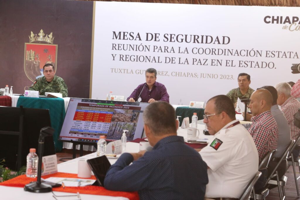Al encabezar esta reunión de seguridad, el mandatario también reconoció al pueblo de Chiapas y a las y los combatientes del fuego porque en este año hubo una baja considerable en cuanto a las hectáreas siniestradas. “Agradecemos a todas y a todos los habitantes de Chiapas que nos ayudaron a cuidar el estado en esta temporada de incendios, así como a las autoridades federales, estatales y municipales y a los Comités Comunitarios de Protección Civil”.