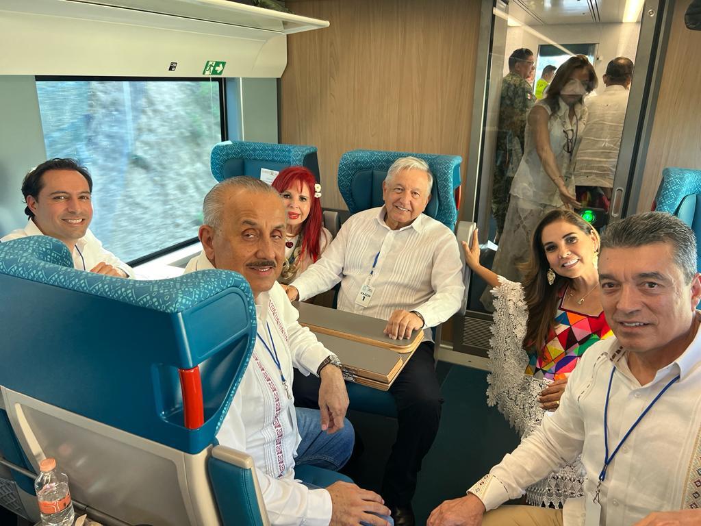 “El Sur Sureste está de fiesta, hoy recorrimos en el Tren Maya de Cancún a Palenque. Estamos muy contentos porque esta obra traerá desarrollo y progreso a toda la región. ¡Gracias, presidente!”, expresó tras culminar el recorrido.