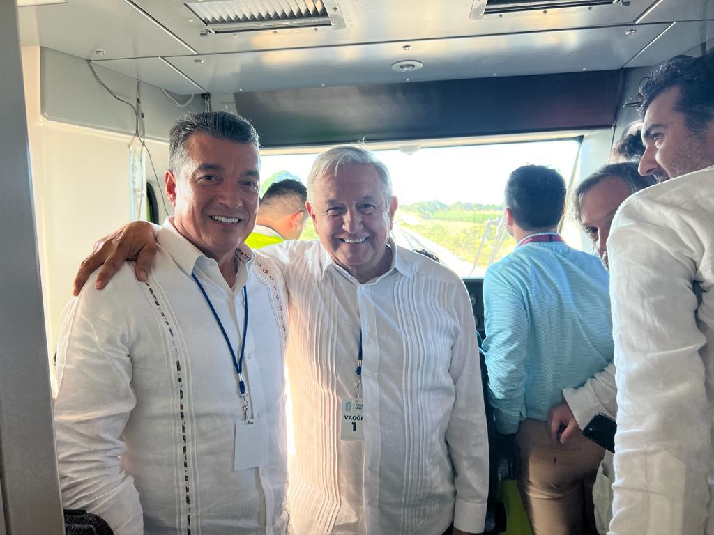 • La mañana de este domingo, en la ciudad de Cancún el gobernador abordó junto al mandatario federal el llamado “Jaguar Rodante”
