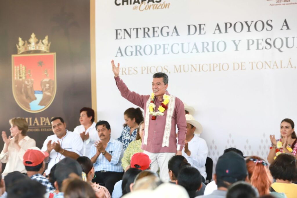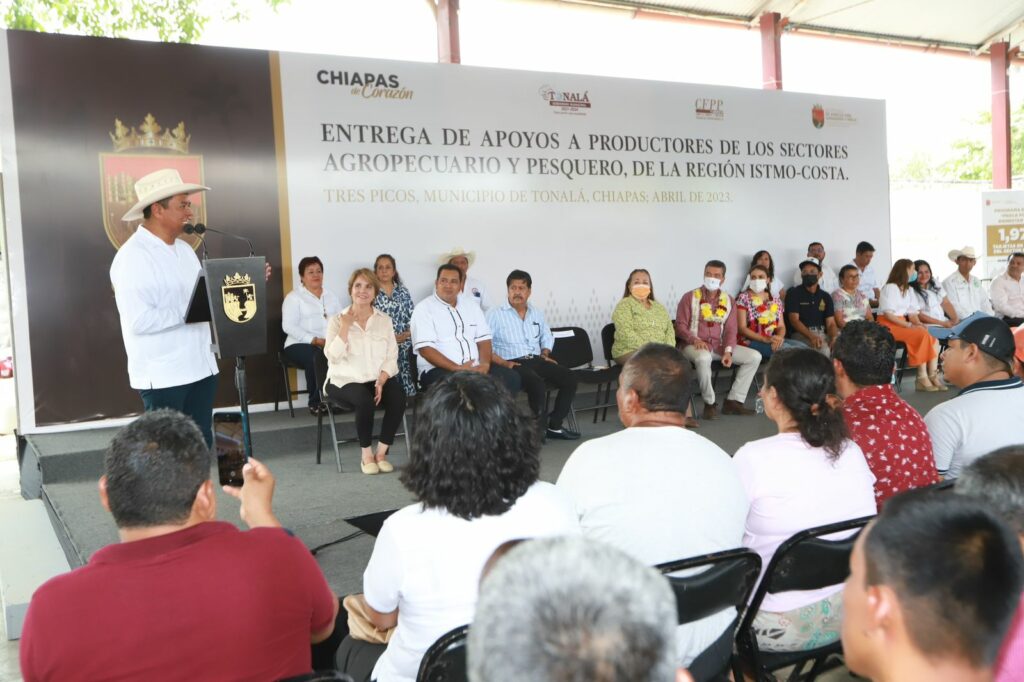 • En Tonalá, el gobernador resaltó que con estos apoyos se abona a la productividad, la economía rural, así como a la soberanía y seguridad alimentaria de Chiapas y México