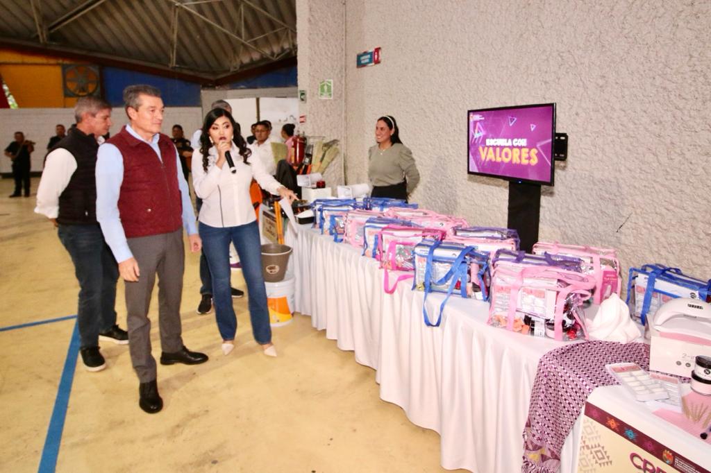El gobernador Rutilio Escandón Cadenas realizó la entrega de insumos de los programas Crear es crecer, juntas y juntos de la mano; Escuela con Valores y Ocupando mi Comunidad, en Tuxtla Gutiérrez, donde resaltó que se continuará invirtiendo en este tipo de apoyos que impulsan el autoempleo, la construcción de espacios seguros y las redes de apoyo en las colonias.