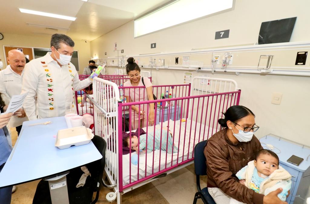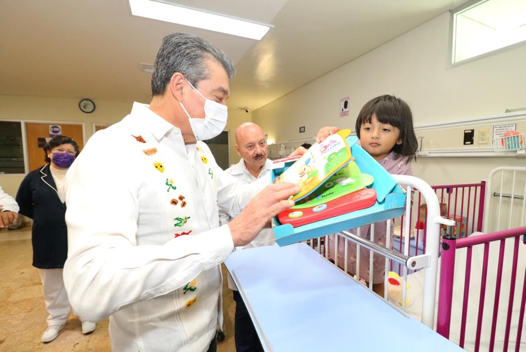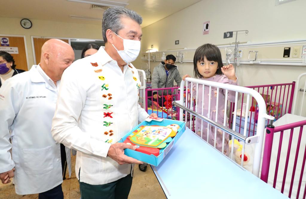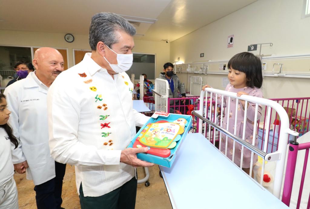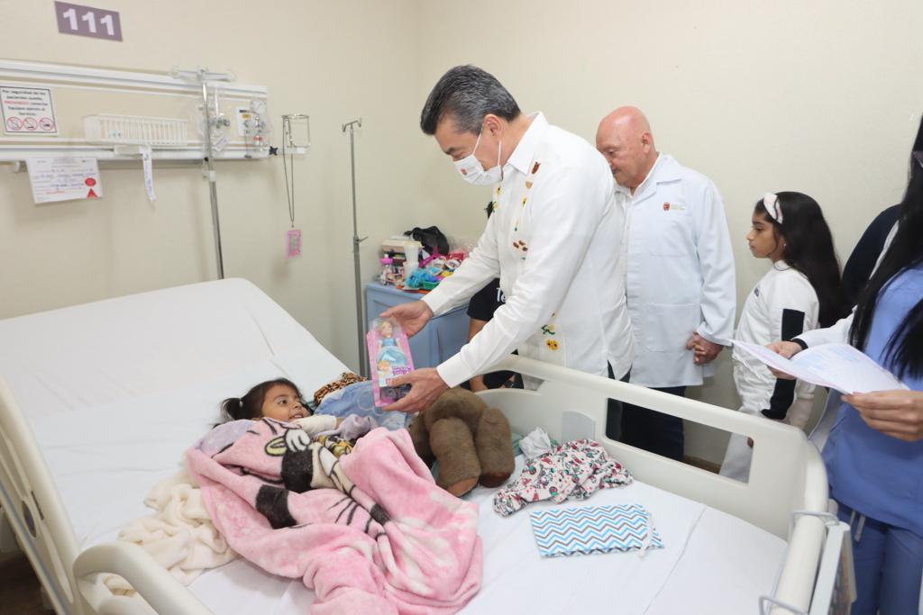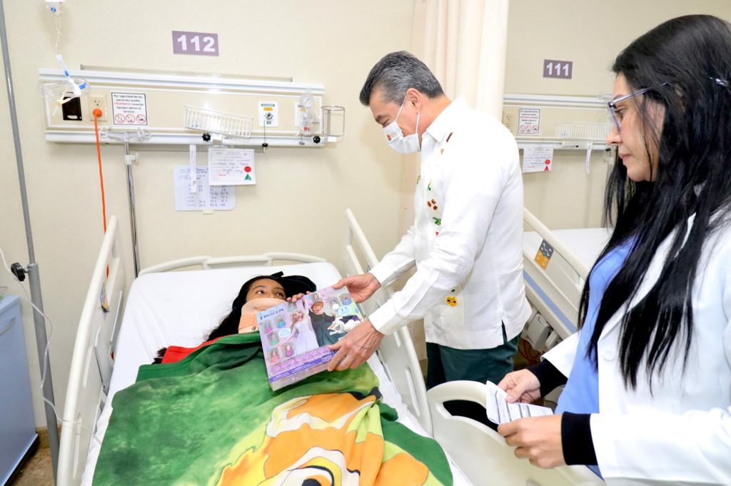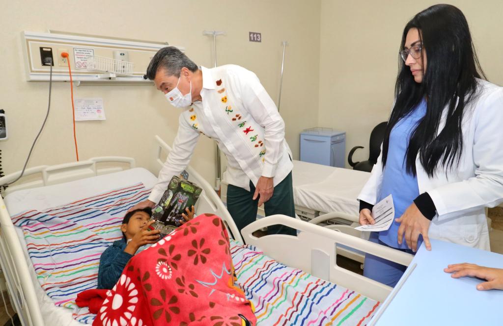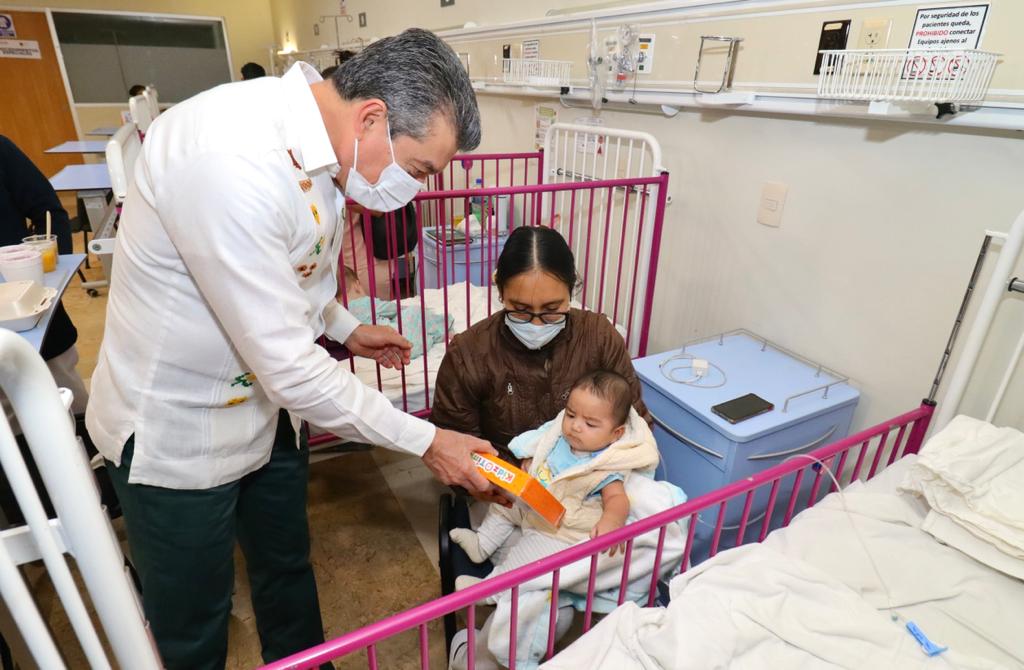 En vísperas de Nochebuena y Navidad, el gobernador Rutilio Escandón entregó juguetes a 18 pacientes internados en el área de Pediatría del Hospital “Dr. Jesús Gilberto Gómez Maza” del municipio de Tuxtla Gutiérrez, desde lactantes hasta menores de 17 años de edad.