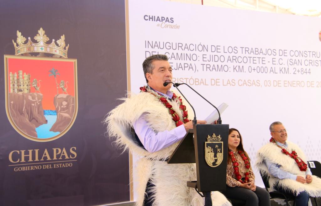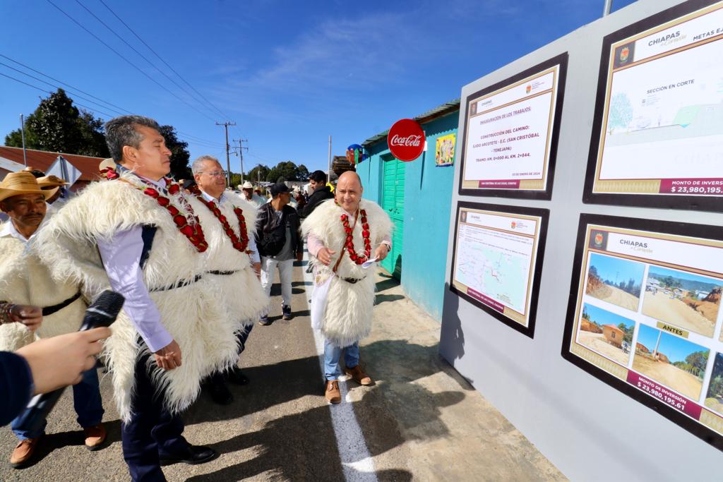 Rutilio Escandón inaugura camino del ejido Arcotete al entronque San Cristóbal-Tenejapa
