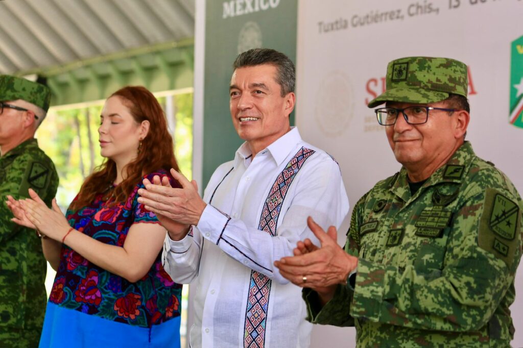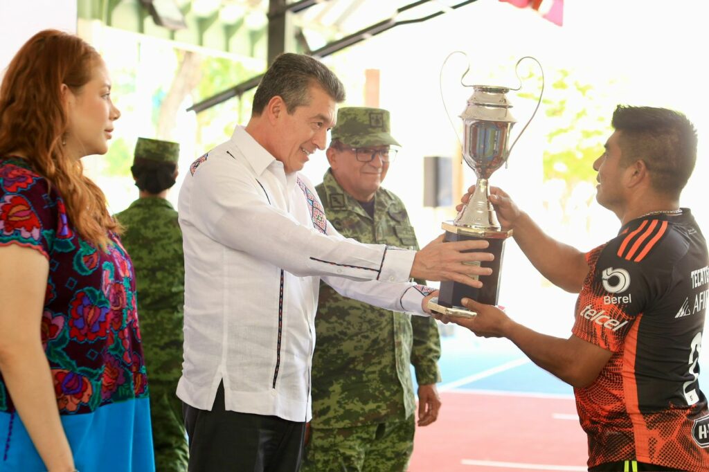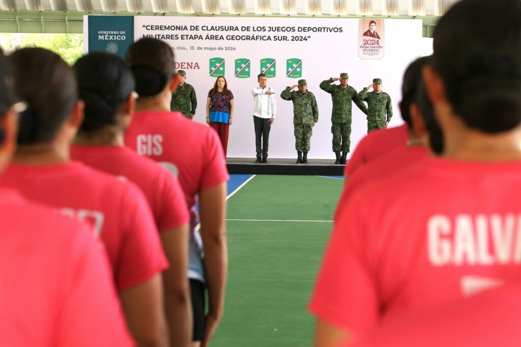 Durante la ceremonia de clausura y premiación de los Juegos Militares Etapa Área Geográfica Sur 2024, el gobernador Rutilio Escandón Cadenas reconoció a las y los integrantes de la Secretaría de la Defensa Nacional (Sedena), quienes participaron en este certamen, por demostrar sus habilidades y valores a través de la práctica deportiva.