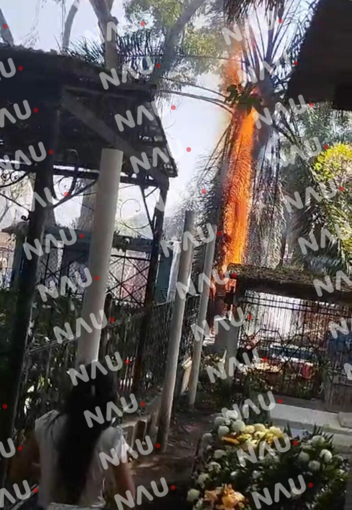 TAPACHULA, CHIAPAS. El mediodía de este jueves, se registró el incendio de una palmera en el interior del panteón jardín, ubicado al Nororiente de la ciudad de Tapachula.