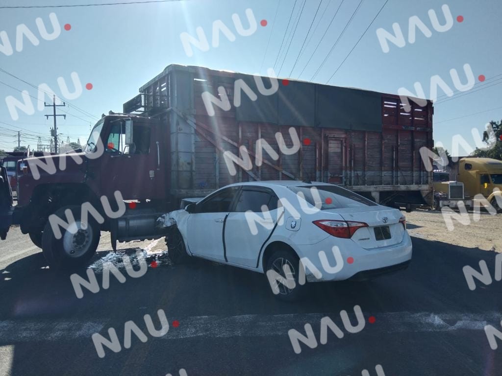 Tapachula, Chiapas. Daños por más de 40 mil pesos dejó el choque de un camión Torton y un automóvil en el libramiento sur poniente, frente a tienda amiga.