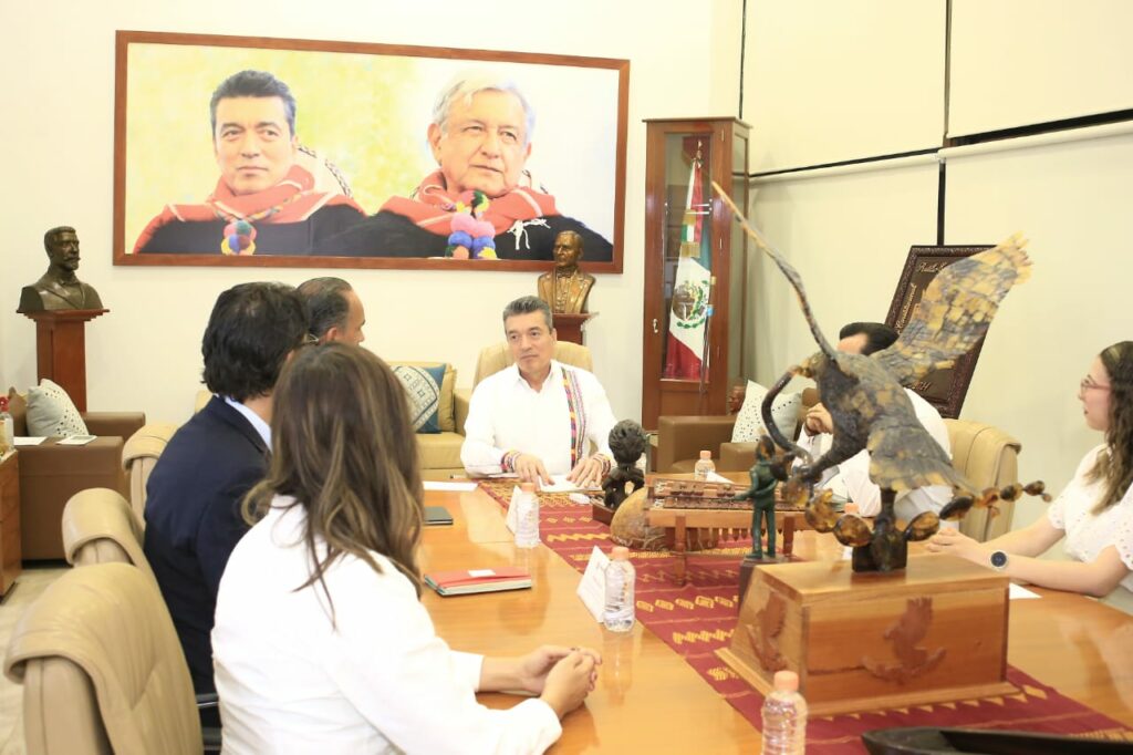 El gobernador Rutilio Escandón Cadenas sostuvo una reunión con el director de Asuntos Corporativos de Kellanova Latinoamérica, Roberto Vázquez Cano, donde se llevó a cabo la presentación de los avances y resultados del Programa Social Integral: “Mejores días para poder crecer juntos”, que se ha implementado en el municipio de Chanal.