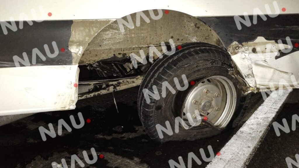 Las autoridades localizaron en la carretera un vehículo Mercedes Benz de color blanco el cual presentaba daños materiales en la llanta trasera del lado izquierdo.
