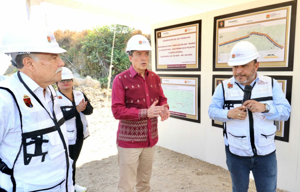 Supervisa Rutilio Escandón obra de ampliación del tramo carretero La Angostura-San Francisco Pujiltic