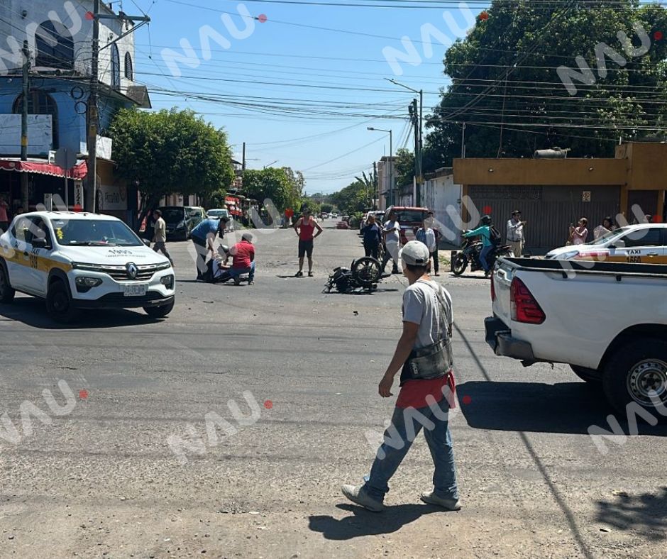 Taxi y motocicleta chocan en la colonia 5 de Febrero; menor de 17 años resulta lesionado