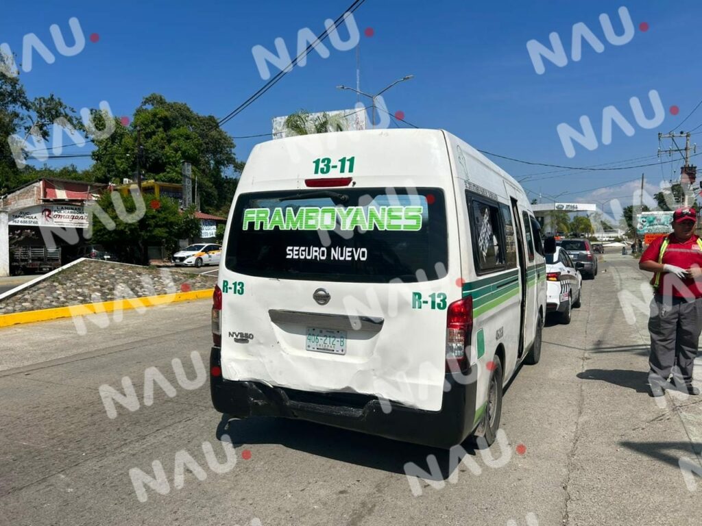 Frente a la conocida empresa de venta de vehículos, no respeta el límite de velocidad y choca por alcance contra la combi de la ruta Framboyanes – centro con número económico 13 11.