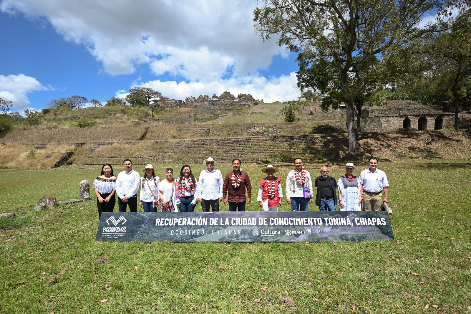 Acompañado por autoridades federales, estatales y municipales, así como por ejidatarios y habitantes de la región, el mandatario anunció que se impulsarán acciones y obras prioritarias para el mejoramiento integral de áreas y caminos en la zona arqueológica de Toniná, con el objetivo de que, a partir del 21 de marzo, pueda ser disfrutada nuevamente por el pueblo y se consolide como un destino turístico de alcance nacional e internacional. Subrayó que ello se traducirá en mayor dinamismo económico, crecimiento y prosperidad compartida para los pueblos.