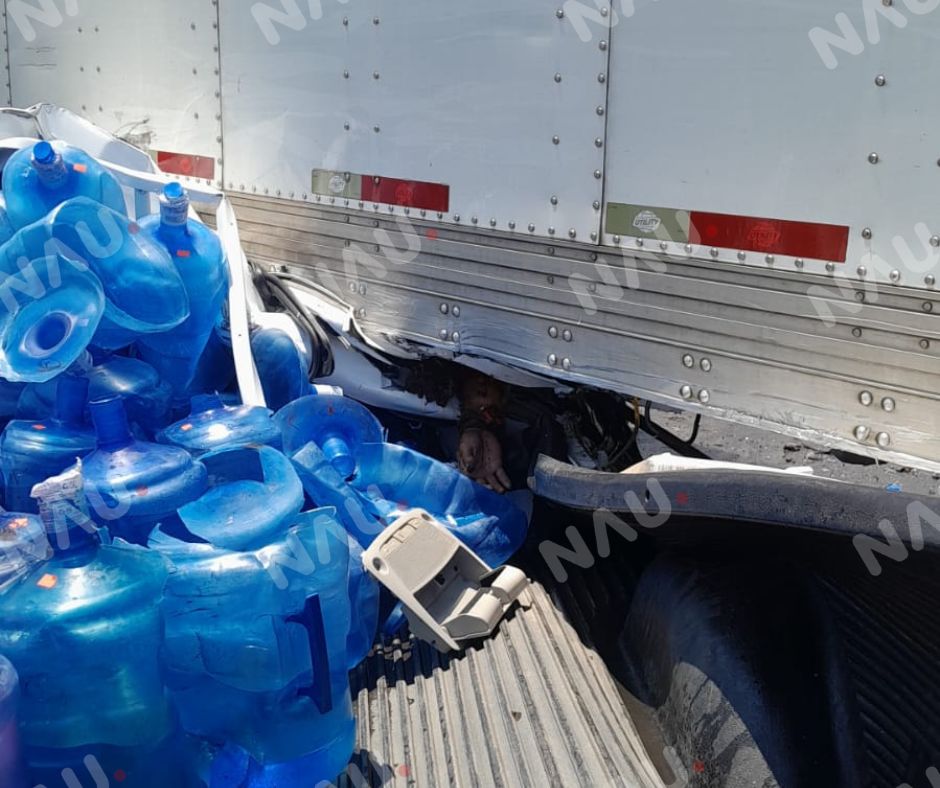 En ese momento, una camioneta blanca tipo NP300, que también transitaba en la misma dirección, se impactó contra la parte media de la caja del tráiler.