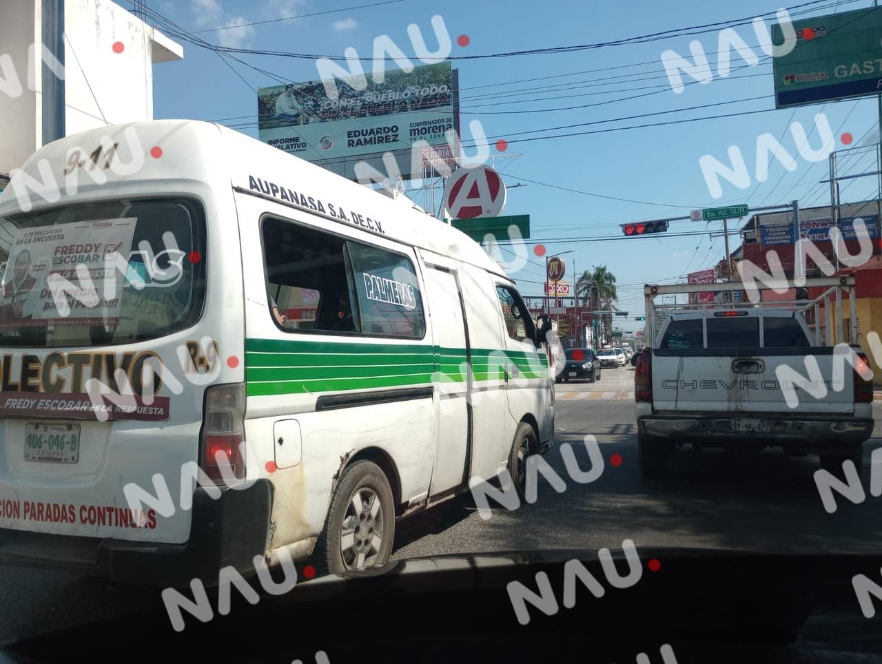La unidad de la ruta Palmeras, identificada con el número económico 9-11, ignoró las reglas de circulación y rebasó toda la fila de vehículos, para luego cortar la circulación y dirigirse hacia el sur sobre la 8va Sur.
