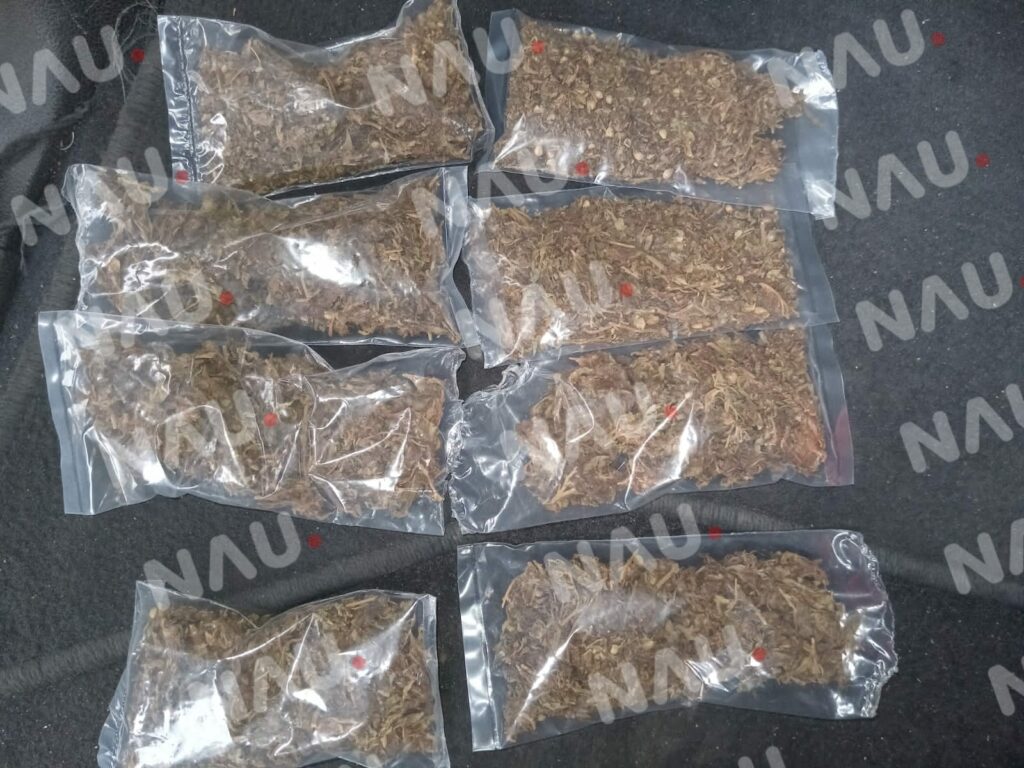 Al aplicarle una revisión se le encontró varias bolsas de marihuana, por lo que se le informó que sería detenido y puesto a disposición de las autoridades Ministeriales.