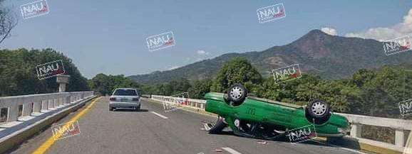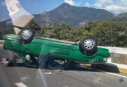 Acacoyagua, Chiapas.- Cuatro personas lesionadas y daños materiales por varios miles de pesos, dejó como saldo la volcadura de un taxi sobre el tramo carretero del puente de elevación Bonanza a la altura de Conagua.
