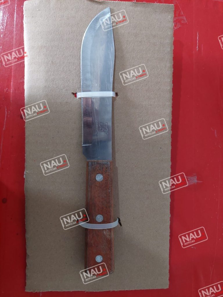 Al realizar una inspección se localizó la altura de la cintura del lado derecho un cuchillo de cacha color café de la marca chantú, por lo que se le hizo del conocimiento que sería puesto a disposición de un fiscal del Ministerio público por el delito de portación de arma prohibido en su modalidad de cuchillo.