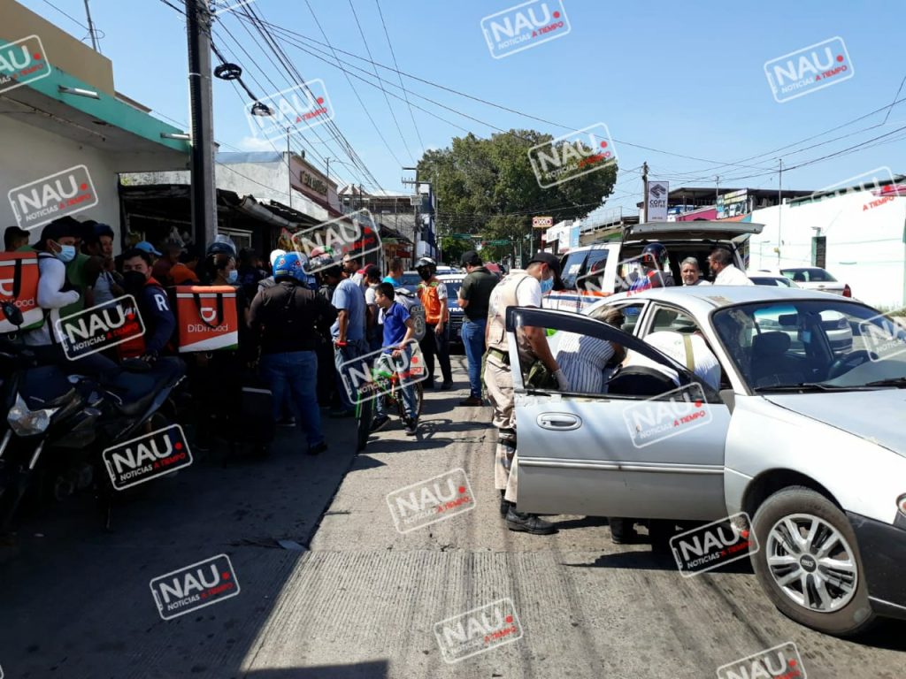 Por lo que el conductor se bajo y se dio a golpes contra el joven motociclista, en donde lo lesionó en la cabeza, personas cercanas en el lugar, solicitaron la intervención de una ambulancia y de la policía, llegado al lugar paramedicos del grupo SAE, los cuales atendieron al lesionado.