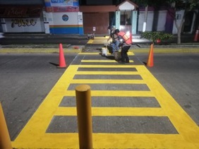 Tapachula, Chiapas.- Con el objetivo de mejorar la movilidad y para garantizar la seguridad de los peatones, el Ayuntamiento de Tapachula a través de la Secretaría de Desarrollo Urbano y Ecología (SEDURBE), realiza el mantenimiento urbano, pasos peatonales y protecciones viales a nivel.