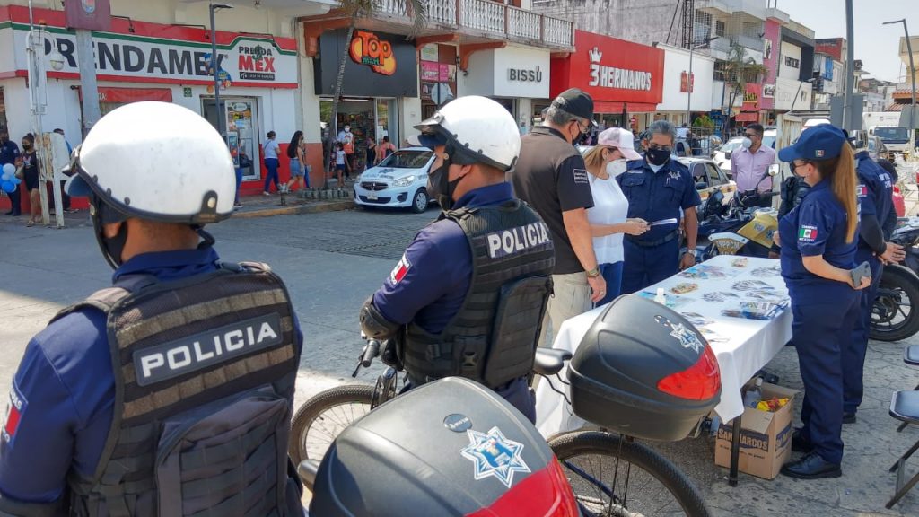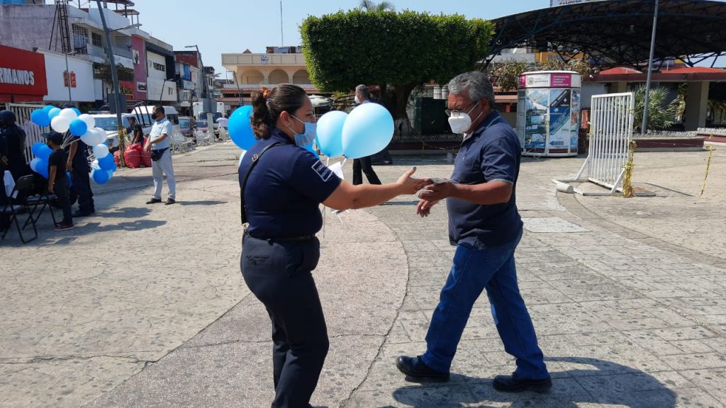 En el sendero peatonal a la altura de la 6ª norte se instaló un módulo en donde elementos de las corporaciones policiacas municipales entregaron trípticos a las personas que cruzaban por ese lugar.