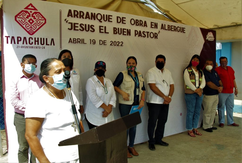 A su vez, la fundadora y directora general del albergue Jesús el Buen Pastor, Olga Sánchez Martínez, agradeció el apoyo de la alcaldesa y de la Unicef, por las obras que beneficiarán no solo a los migrantes que se atienden en esos centros de asistencia, sino a todos los tapachultecos.