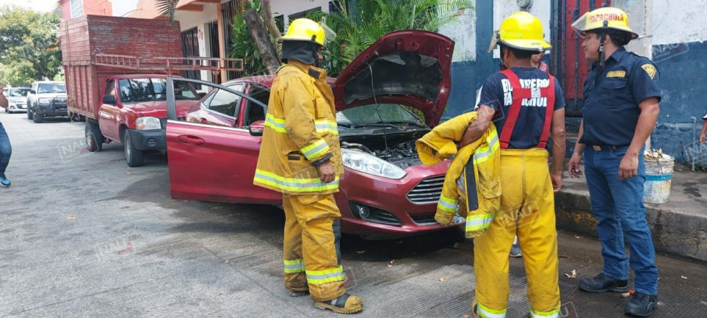 Tapachula, Chiapas.- Un vehículo que se estaba incendiando fue controlado por personal del heroico cuerpo de bomberos, los hechos se dieron sobre la 3a avenida sur prolongación entre 12a y 14a calle oriente de la colonia 16 de septiembre, la pronta intervención de los bomberos evitaron que el fuego se propagara en todo el vehículo.