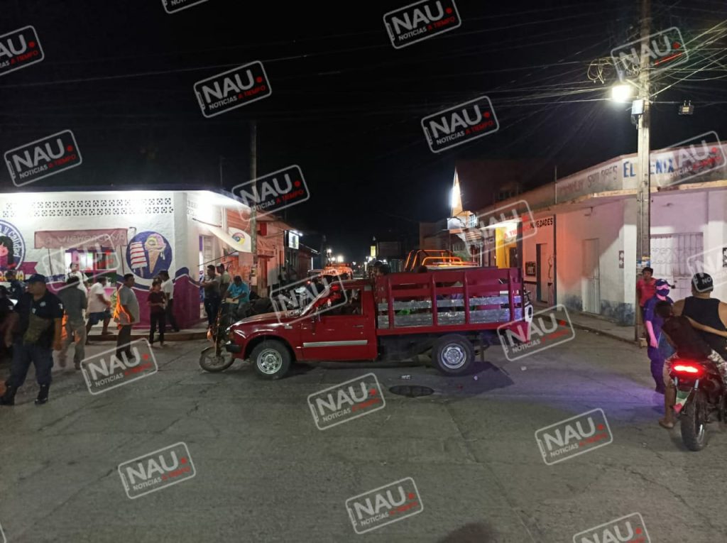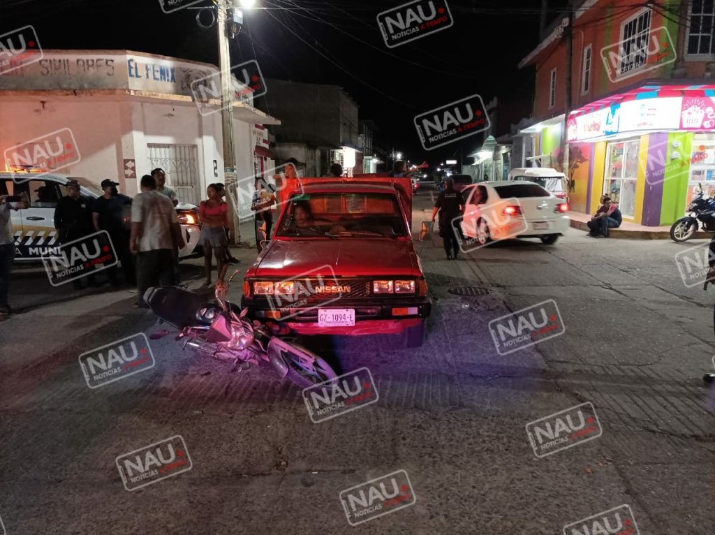 Choca camioneta contra motocicleta en el parque central de Acacoyagua.