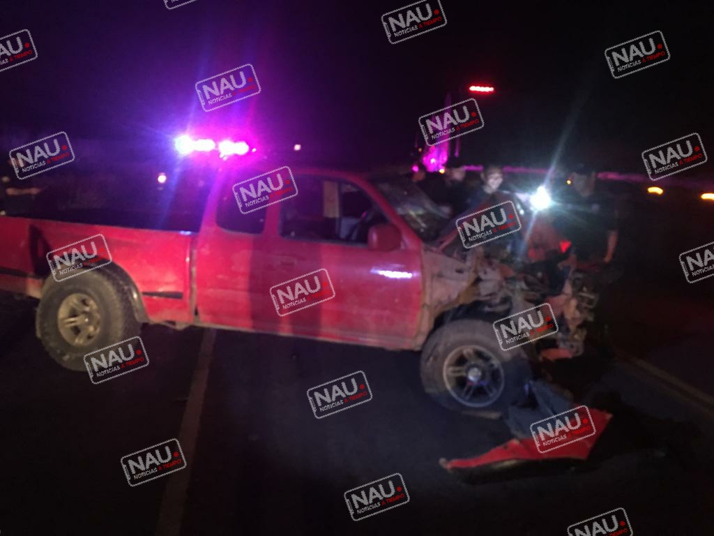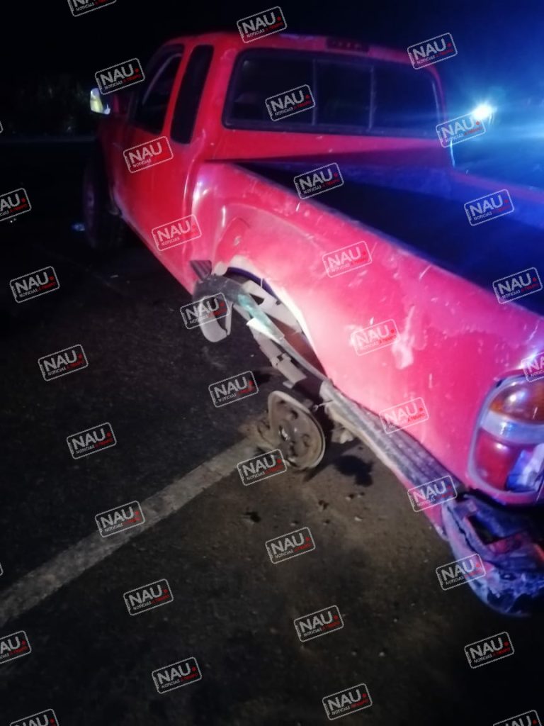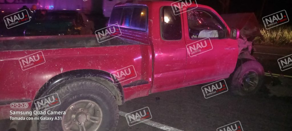 El segundo vehículo en posesión de oriente a poniente de color rojo de la marca Toyota Tacoma con placas del estado de México, ambos vehículos se encontraron con daños materiales y abandonados, desconociendo quiénes eran los conductores.