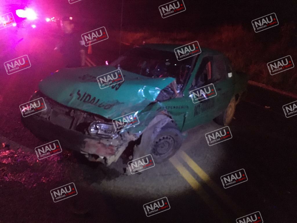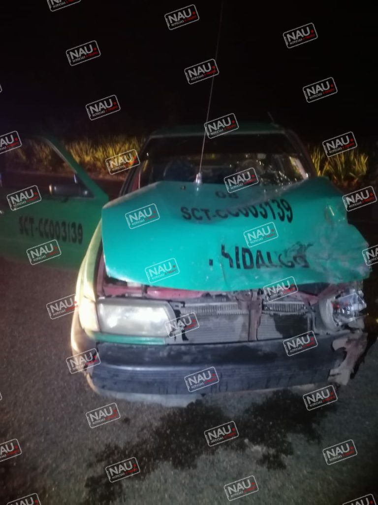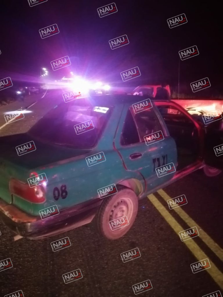 Las unidades siniestradas es un vehículo que estaba en posición de sur a norte, tipo taxi de color verde, marca Tsuru con placas del estado de Chiapas, del sitio independencia con número económico 08.