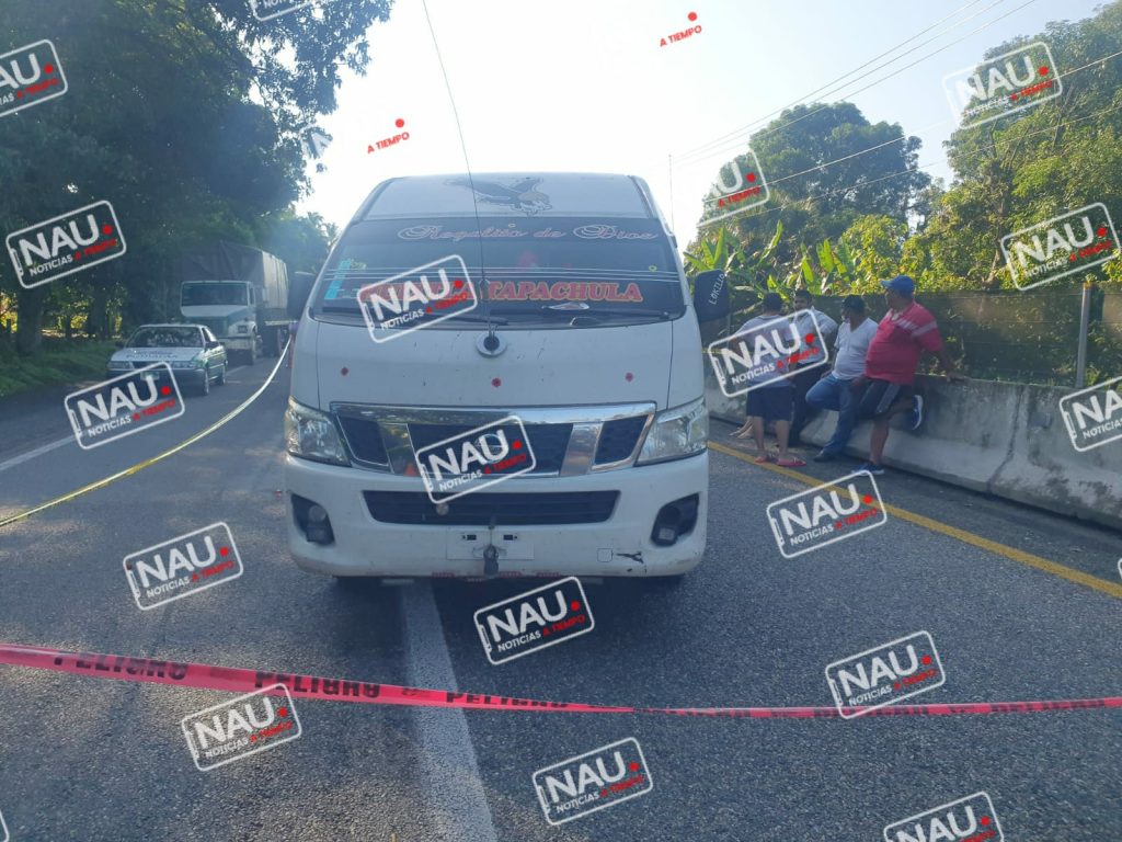 Y el vehículo marca Nissan tipo Urvan de color blanco sin placas de circulación, con permiso del Servicio Público Federal número económico 64 de la ruta Tapachula – Huixtla de la empresa transporte el Rey Dary, conducido por Jesús “N” de 23 años de edad con domicilio en Huixtla.