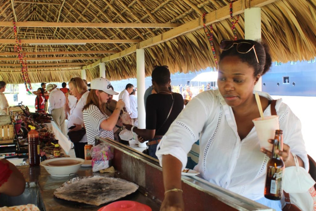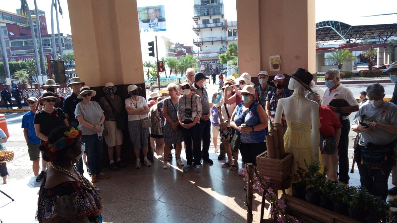 En el muelle de Puerto Chiapas se presentó el Ballet Folclórito Magisterial Tatucahué y el grupo de artesanos Hunab Kuh, quienes deleitaron a los visitantes extranjeros con bailables y las tradiciones chiapanecas.